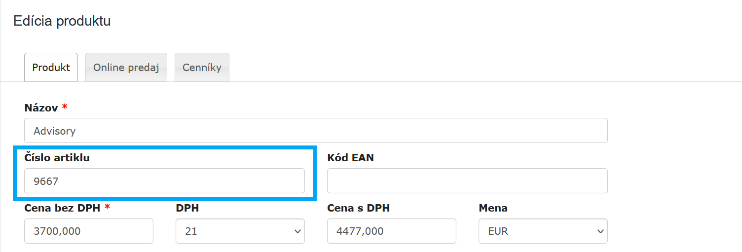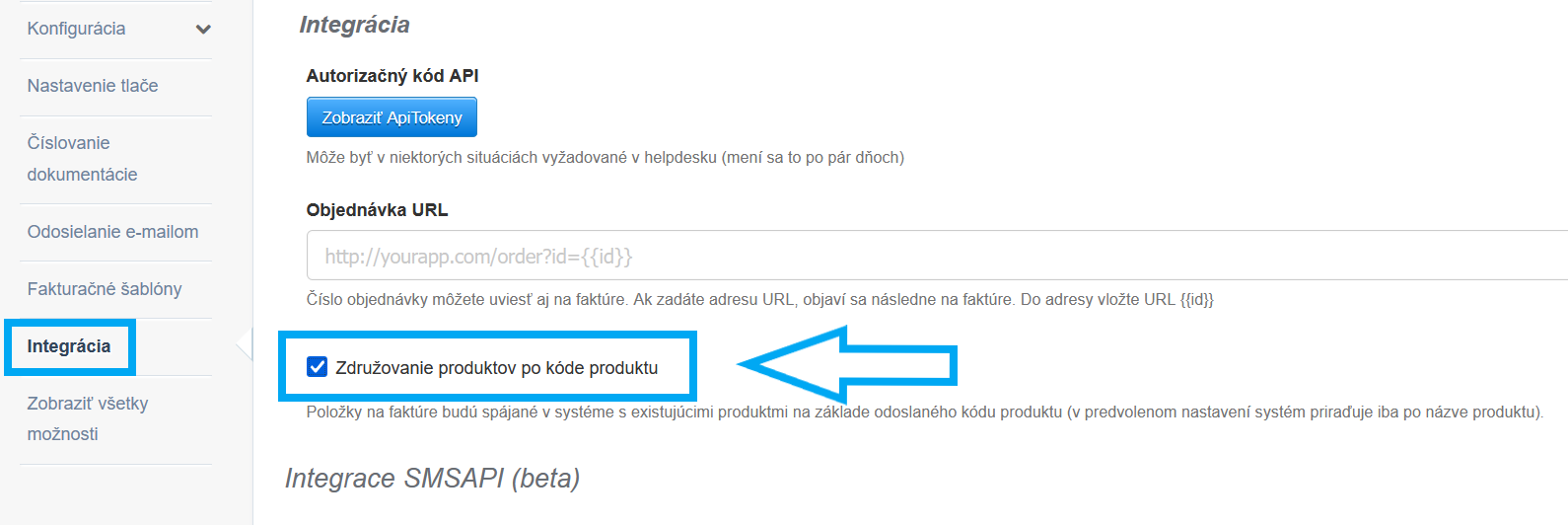 - začiarknite políčko Združovanie produktov po kóde produktu;