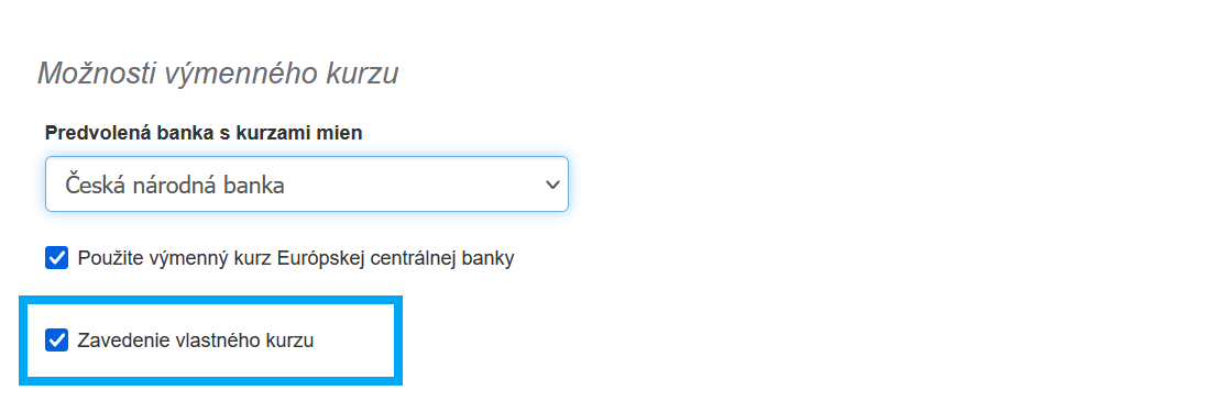 Po vykonaní tejto zmeny si pri vystavení / úprave menovej faktúry budete môcť nastaviť vlastný výmenný kurz.