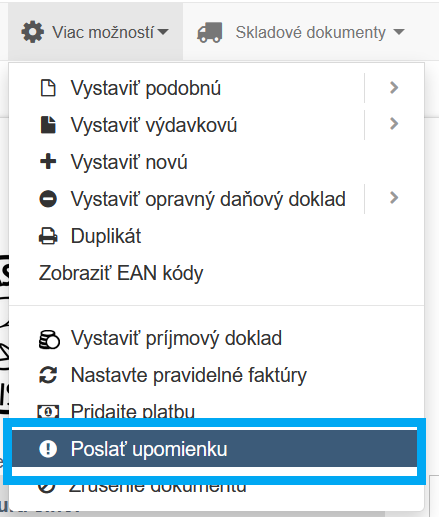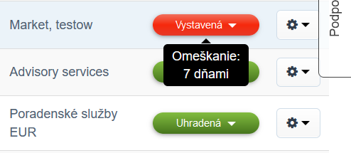Pokiaľ vystavená faktúra nebola uhradená včas (prekročila dátum úhrady a ešte nie je označená ako uhradená), je v zozname dokladov označená červenou farbou. Po nabehnutí na tento stav môžeme vidieť počet oneskorení v dňoch.