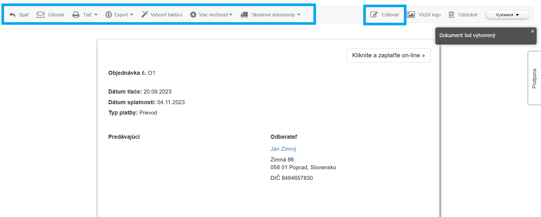- ako aktivovať doklad objednávky;