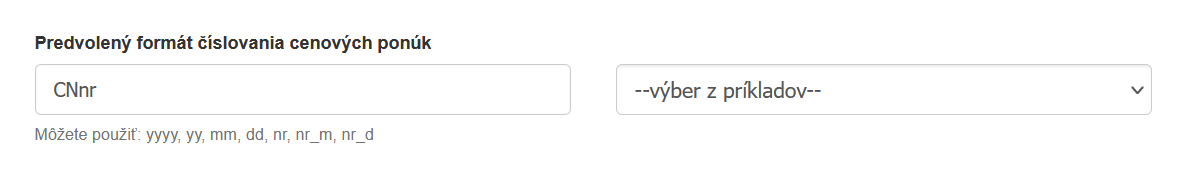 Číslovanie dokladu cenovej ponuky