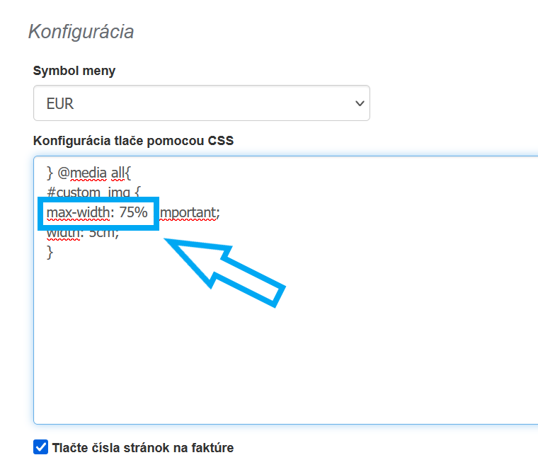 - v poli Konfigurácia tlače pomocou CSS znížte alebo zvýšte percento