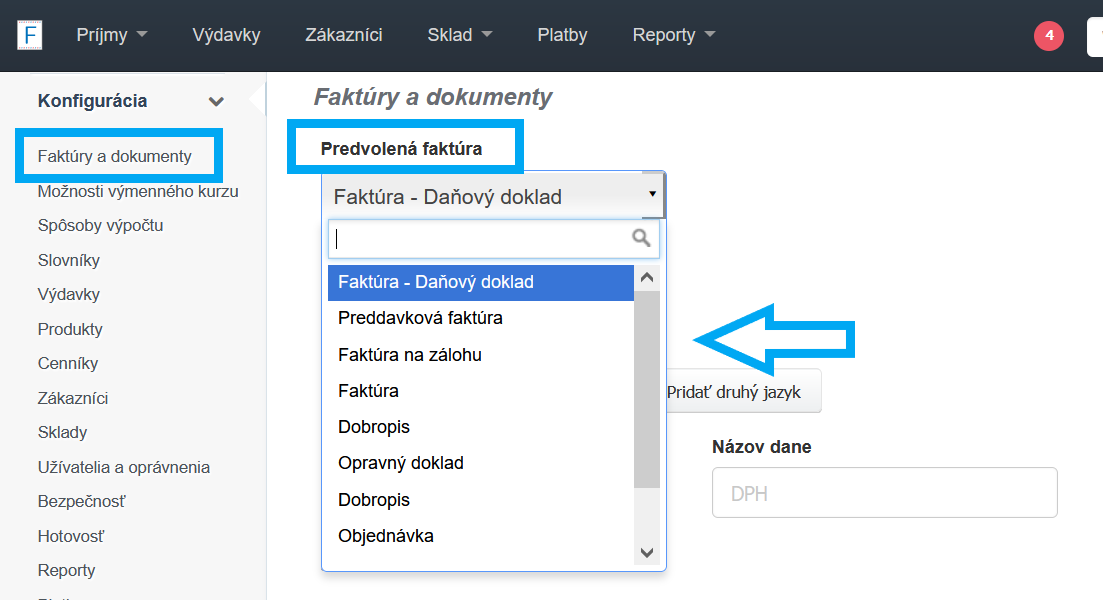 Kde zvoliť predvolený typ faktúry?