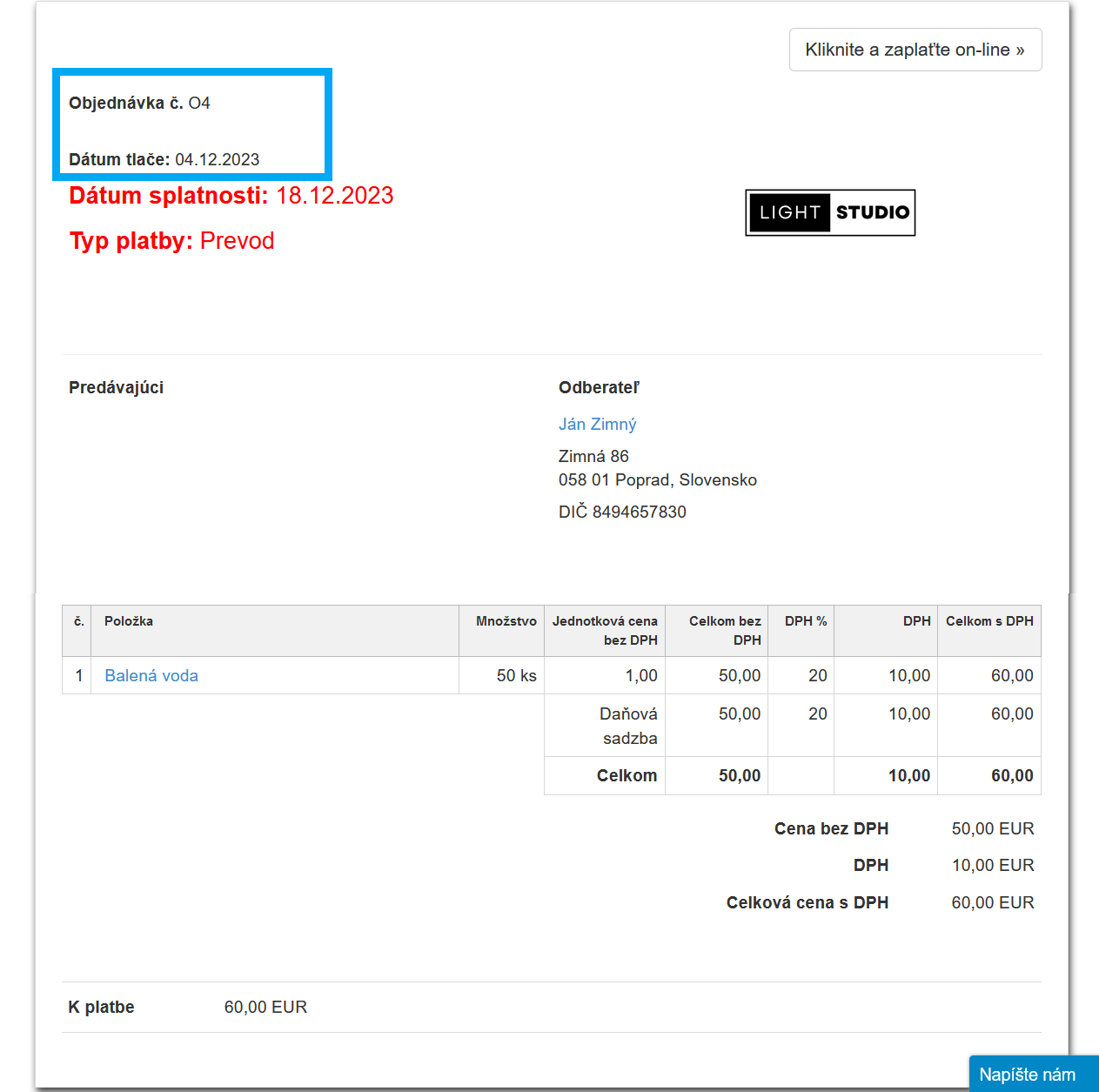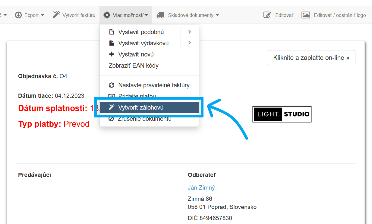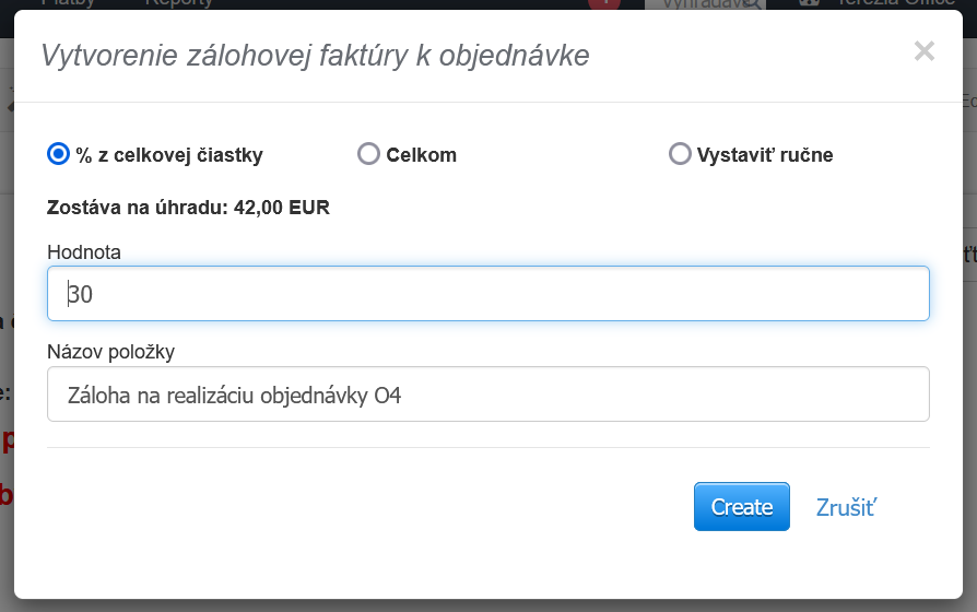 - Po vygenerovaní zálohovej faktúry sa môžete jednoducho vrátiť k objednávke a vystaviť ďalšiu alebo uzavrieť transakciu vystavením konečnej faktúry.