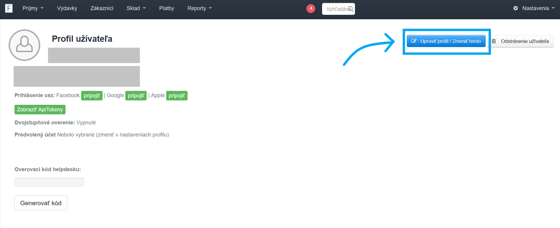 - stlačte modré tlačidlo Upraviť profil / Zmeniť heslo