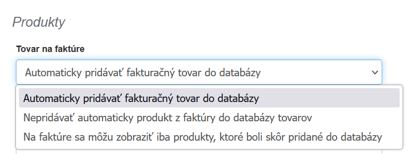 - Nepridávať automaticky produkt z faktúry do databázy tovaru