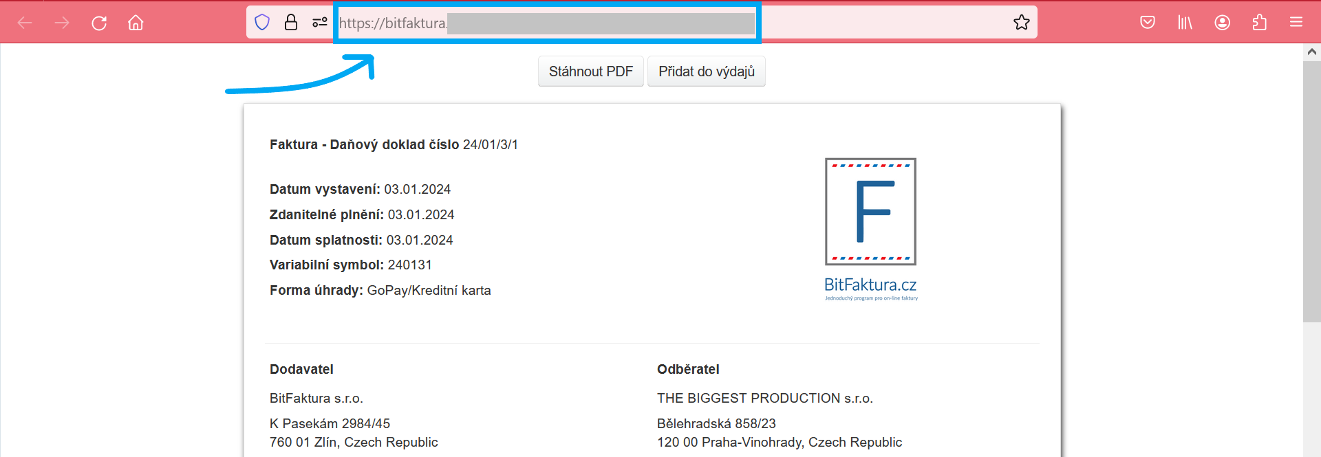 5. Skopírujte adresu URL faktúry a odošlite ju.